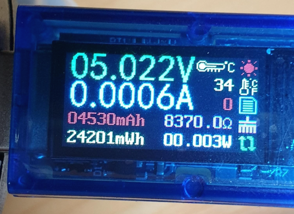 이전에 구입한 8포트 충전기로 충전하면 5.2V 2.0A로 충전되는 것을 확인할 수 있습니다.