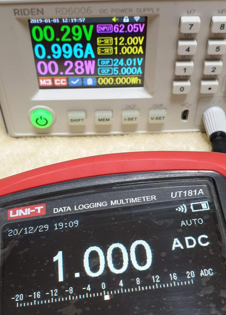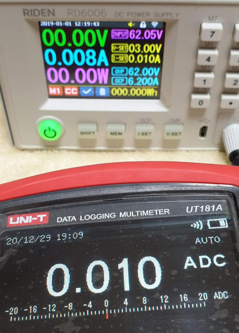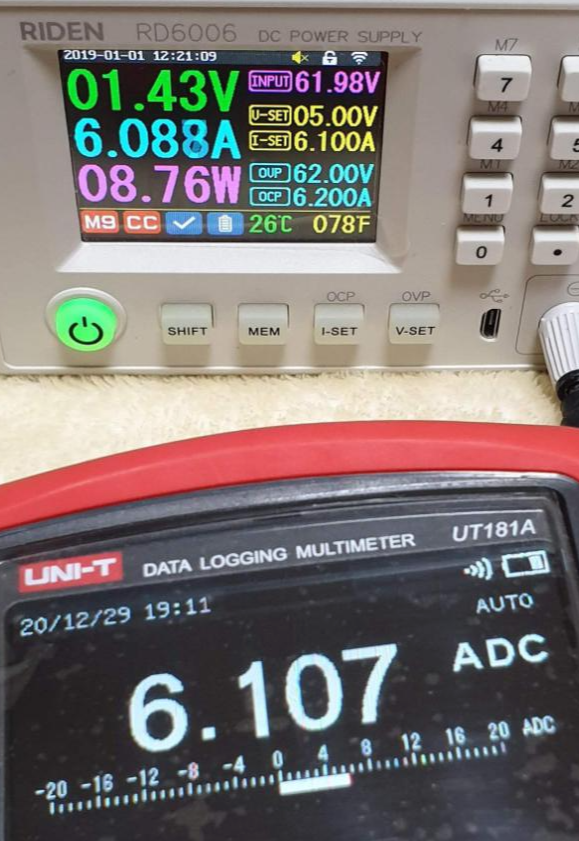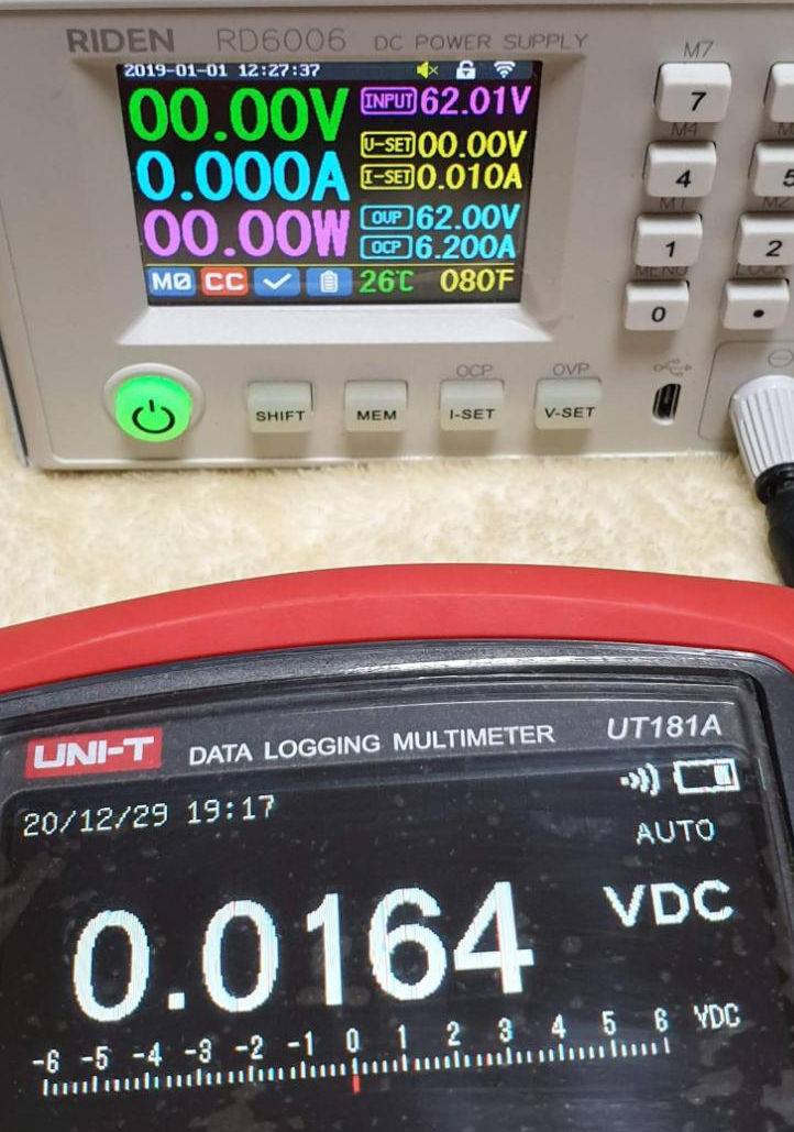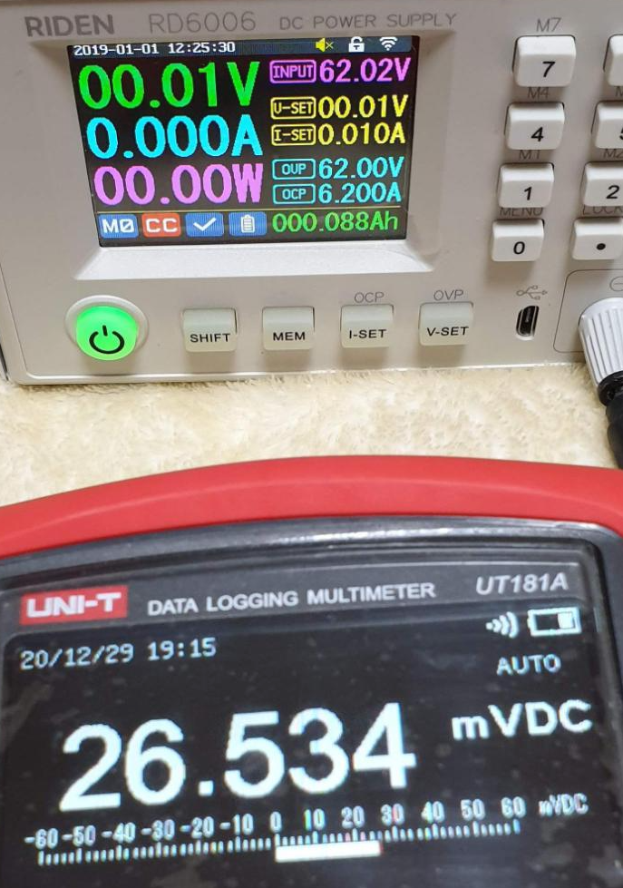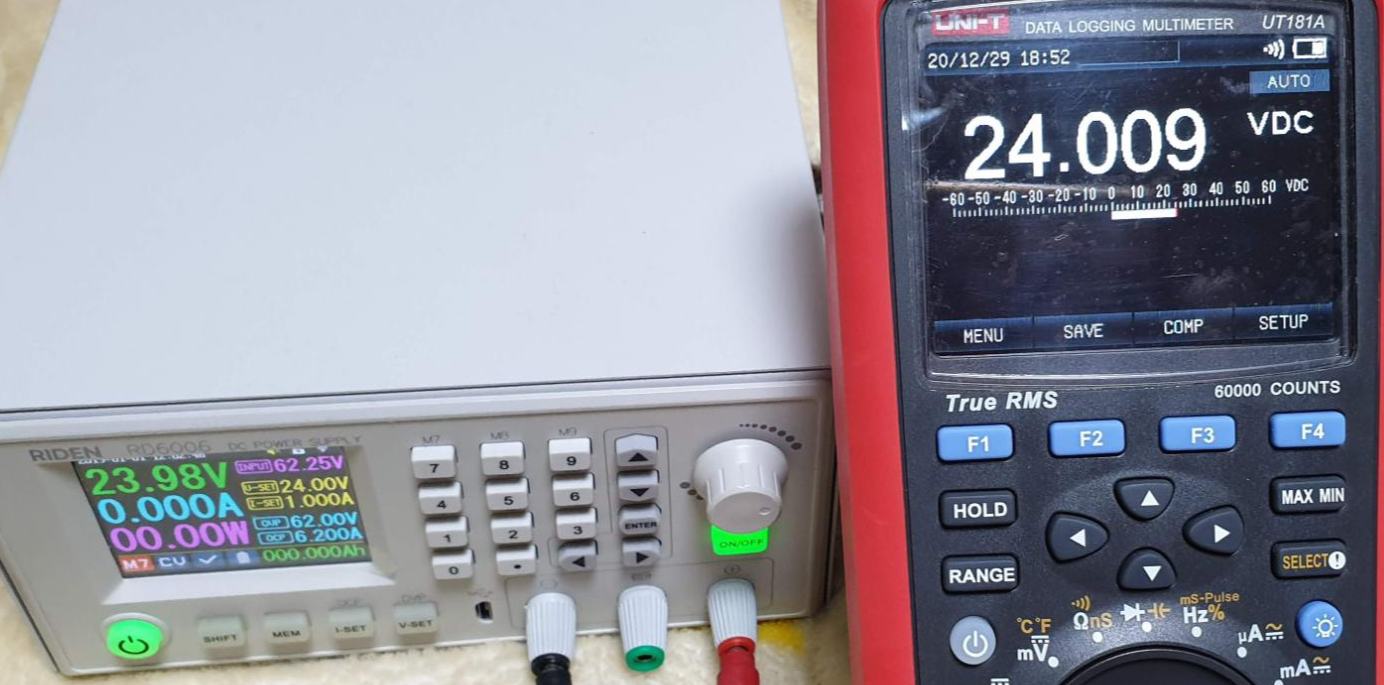 | RD6006 설정값 | RD6006 표시값 | UT181A 측정값 |