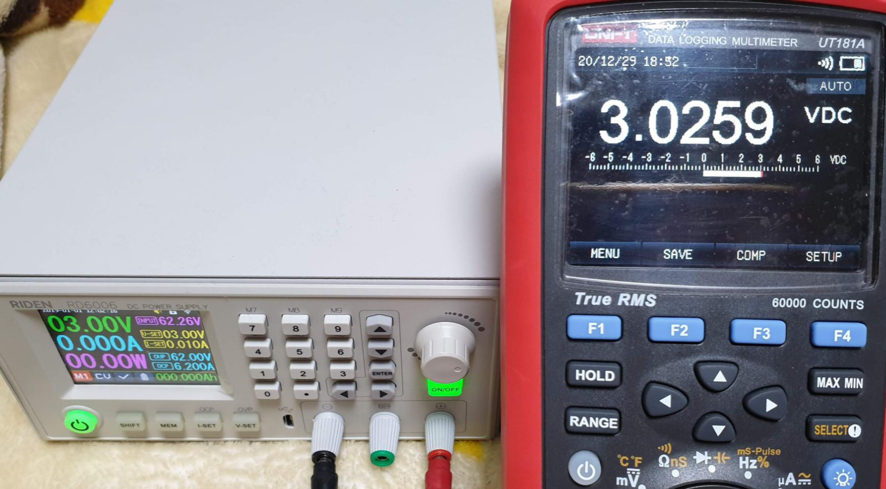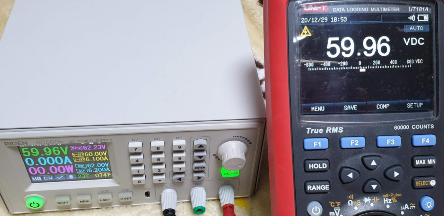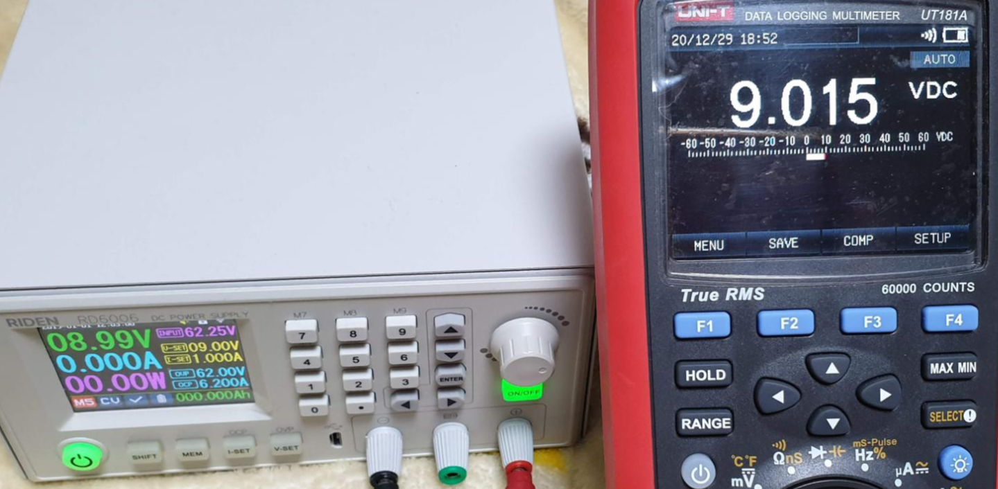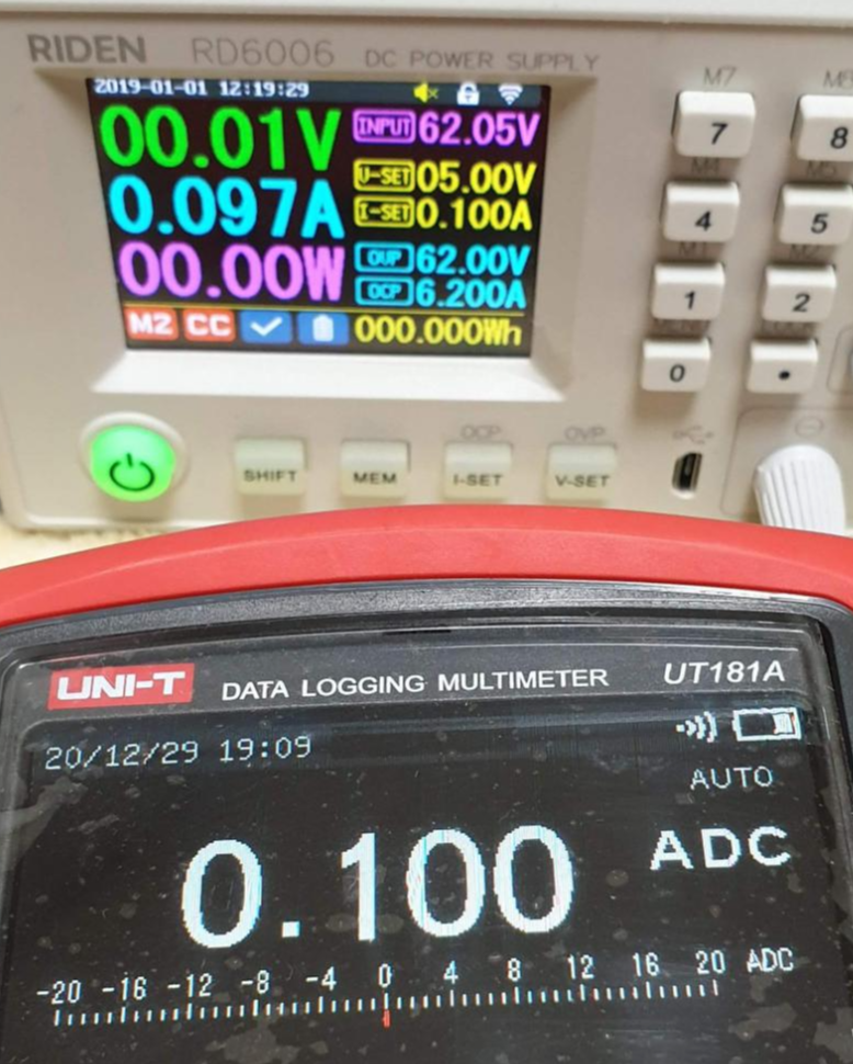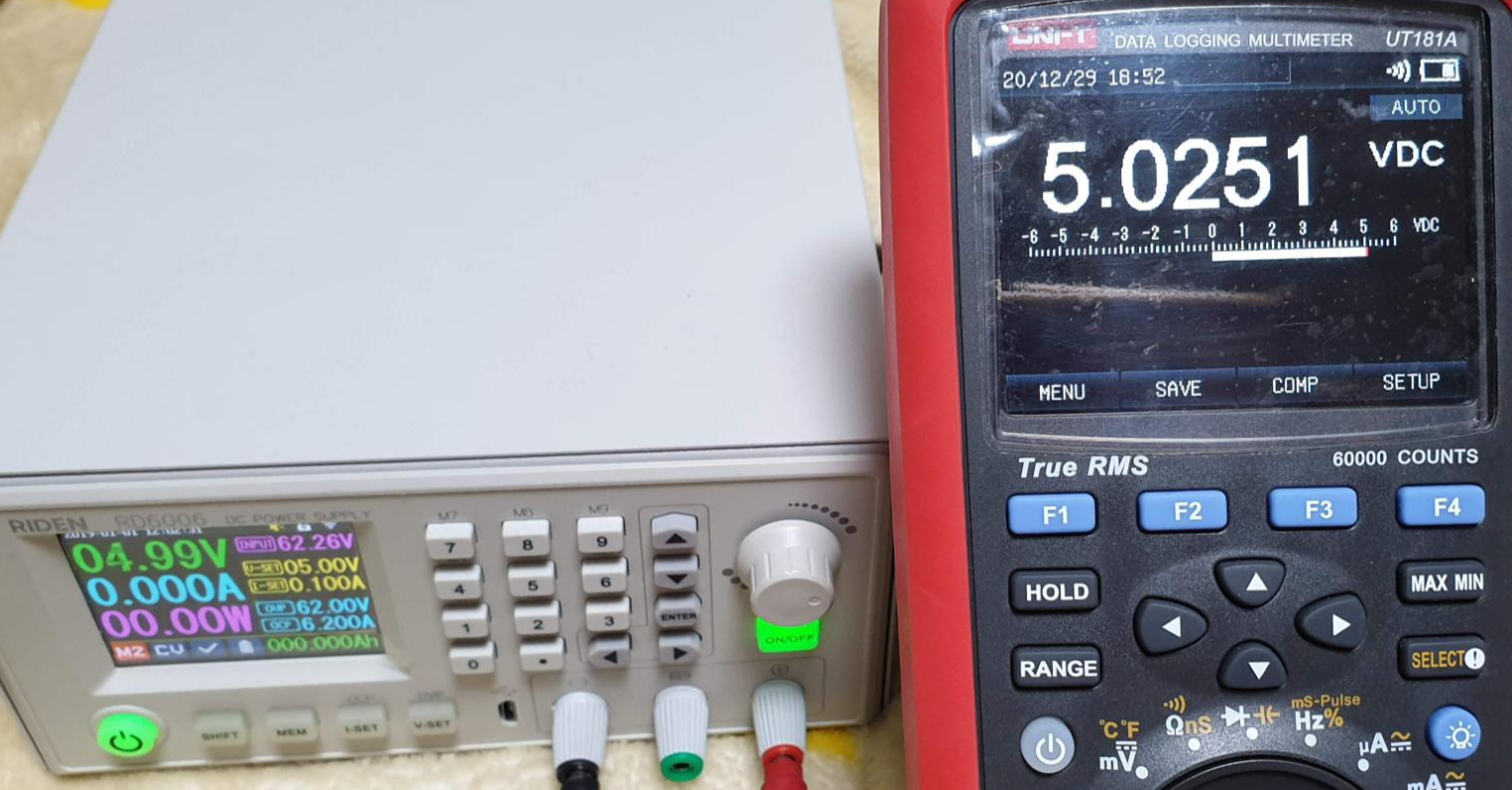 | RD6006 설정값 | RD6006 표시값 | UT181A 측정값 |