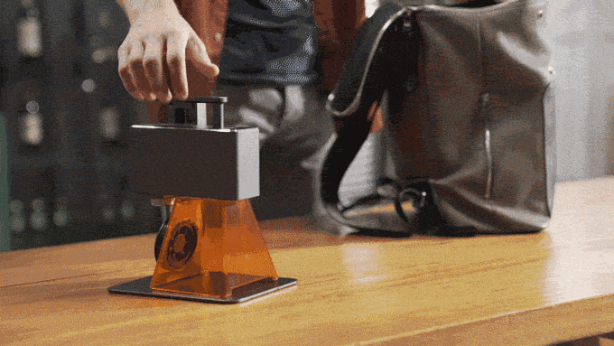 LaserPecker 2 모델은 손잡이가 달려있어 보호 피라미드 케이스를 씌우고 측면에 갖다 대고 있으면 된다.