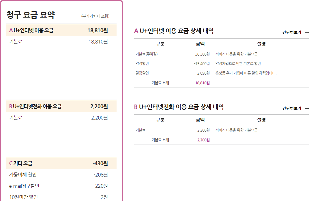 인터넷+070 전화 요금: 월 20,580원
