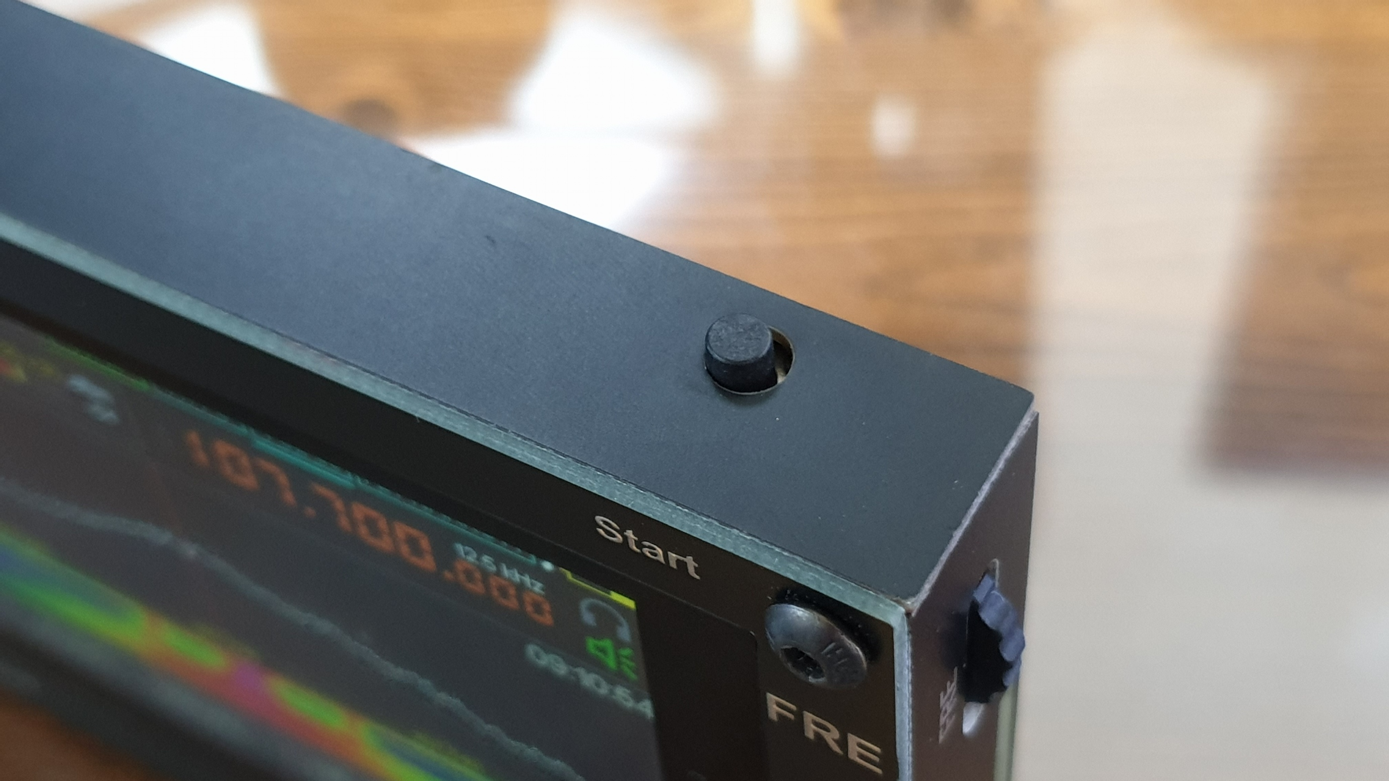 짧게 누름: 주파수 변화량 변경. 회전할 때마다 몇kHz씩 이동할 것인지 설정하는 것. 다시 누르면 적용된다.