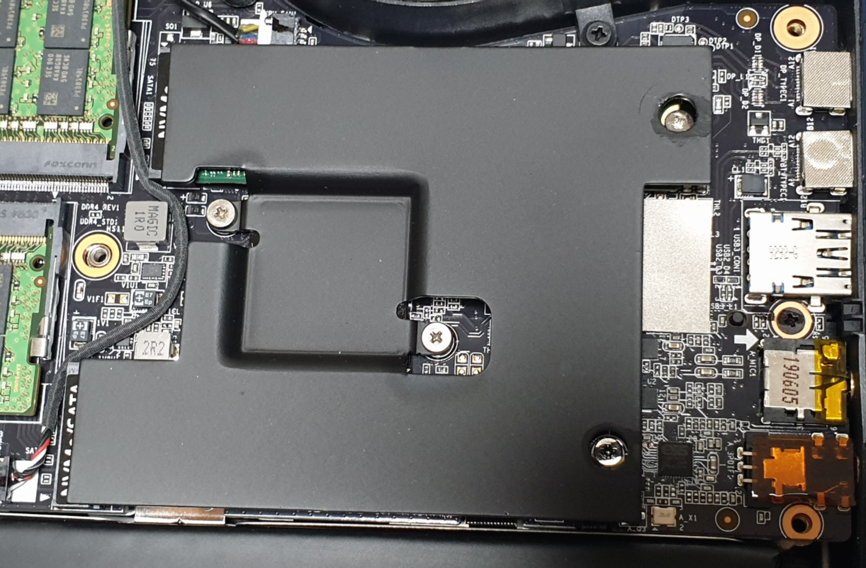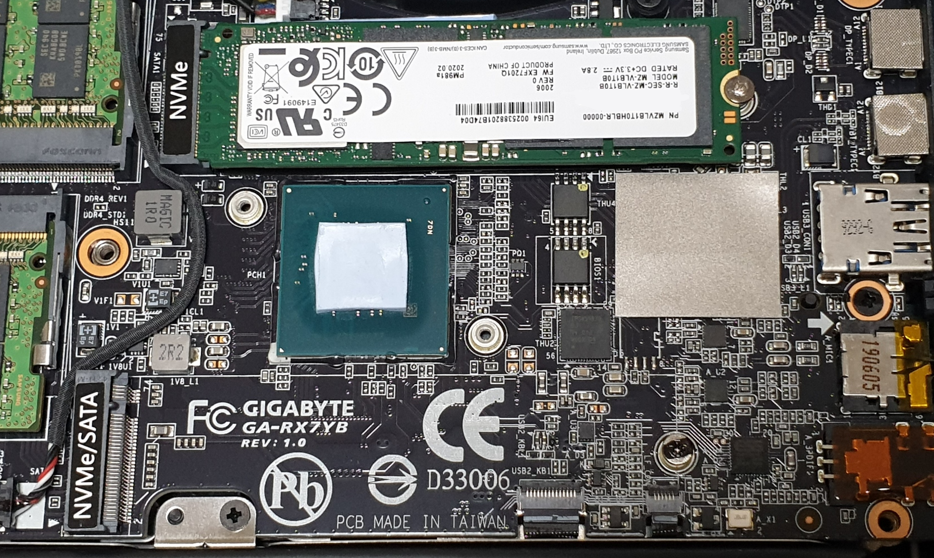 푸른 써멀패드가 두꺼워서 처음엔 SSD가 위로 휘어지지만 시간이 지나면 제자리로 갈 겁니다.