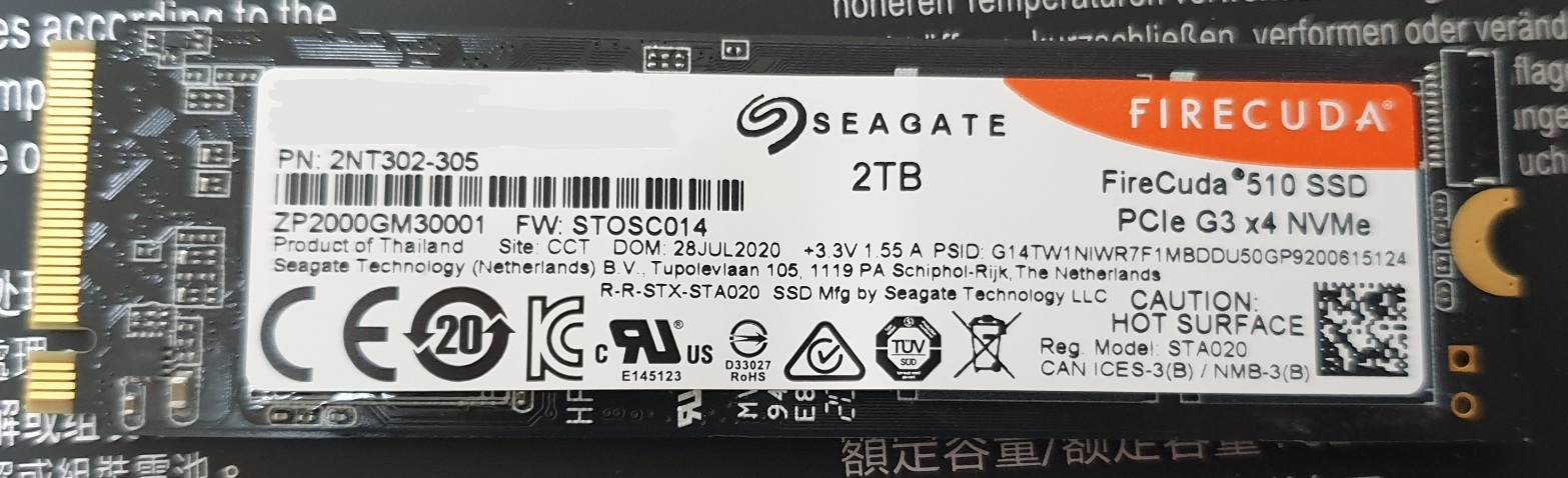 노트북 저장장치 용량 확장을 위해 구입한 SSD. E: 드라이브에 할당하여 게임 파일, VHD용으로 사용 중이다. 지금껏 SSD는 삼성을 썼고 HDD는 시게이트를 써왔는데, 반도체도 시게이트를 써보려고 구