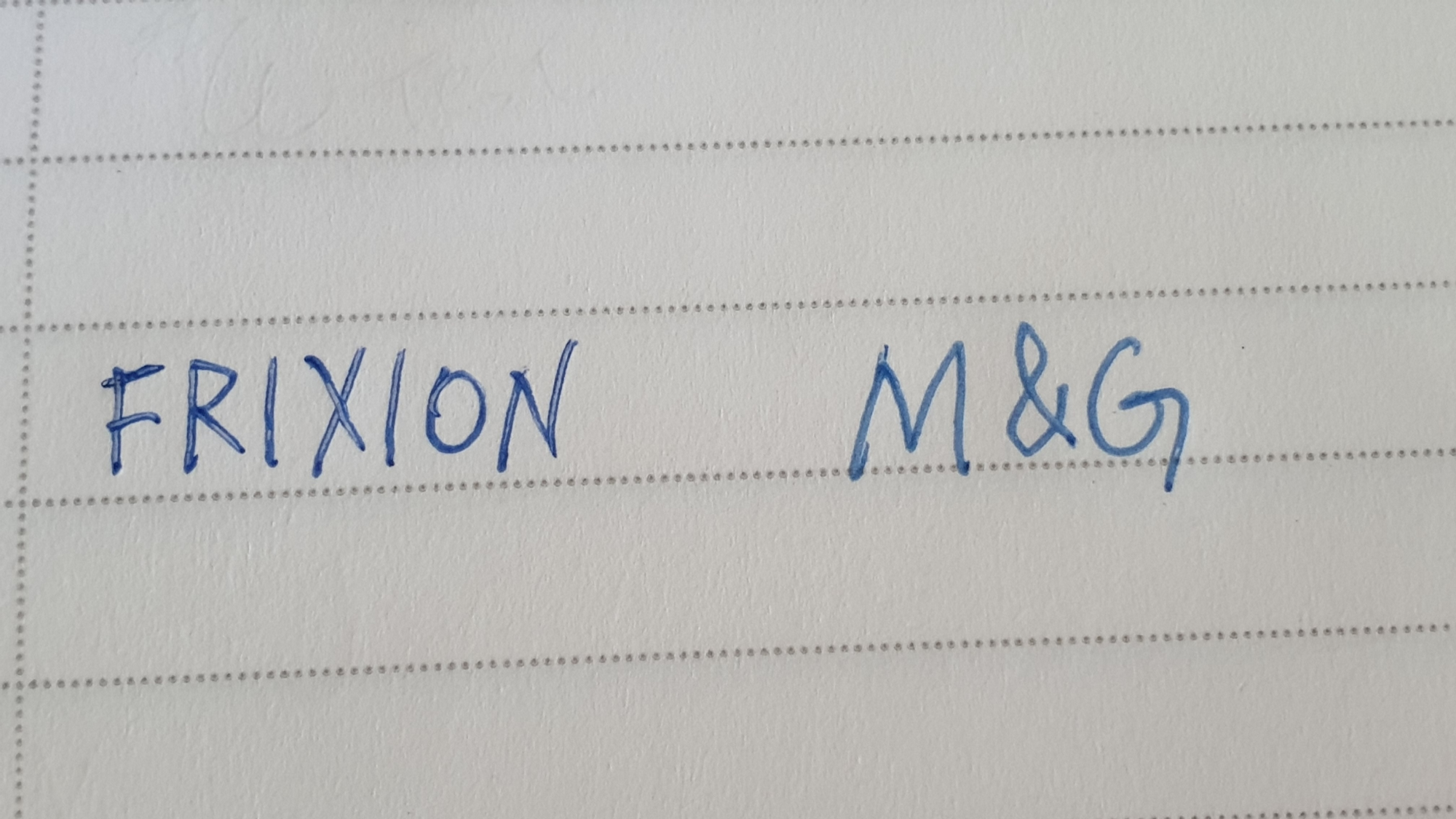 프릭션 4색 볼펜의 파란색과 M&G 파란색으로 노트 종이에 적은 후 지워보았다.
