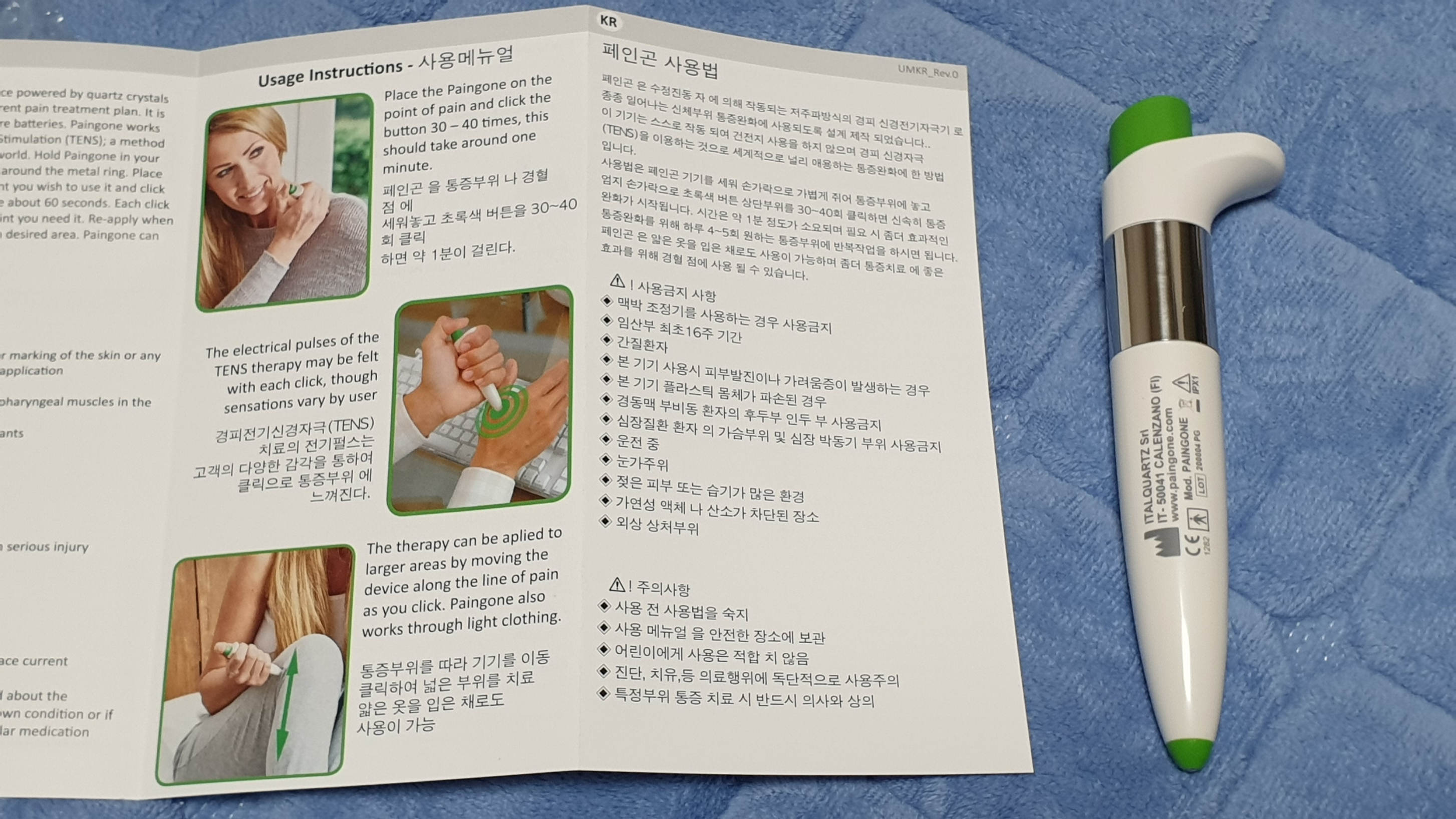 AAA 전지를 넣고 자동으로 전기 충격을 주는 paingone+ 모델도 있습니다.