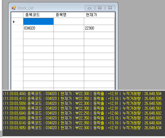 장중일 때는 실시간 데이터 수신이 잘 된다.