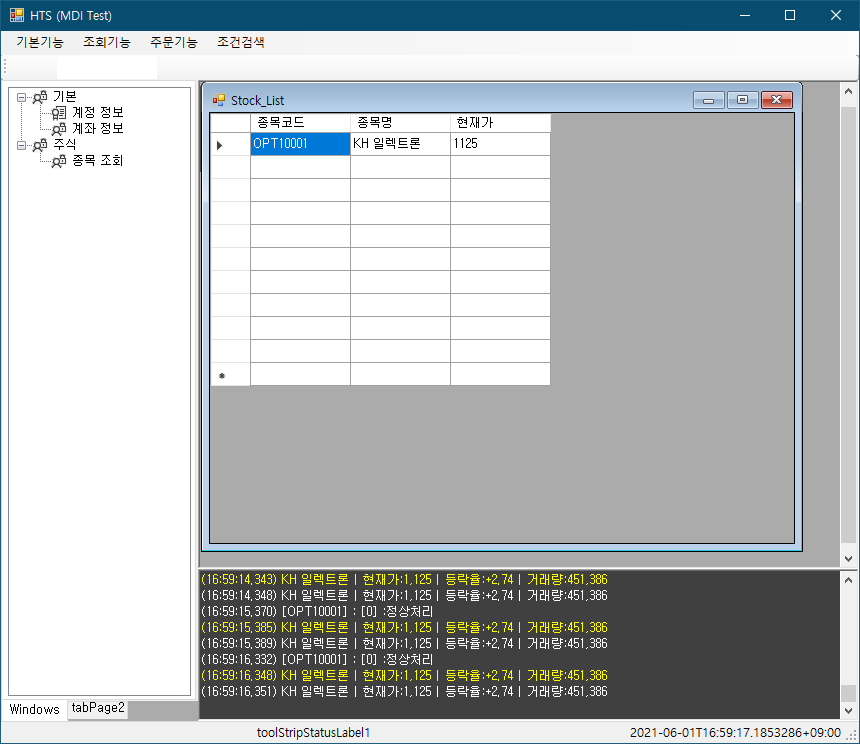 메시지가 두 줄씩 나오는 것은 하나의 OpenAPI 컨트롤에 부모, 자식 메서드를 다 등록해서, 수신 이벤트가 다 처리되는지 확인하려고 그런 것. 잘 되네~
