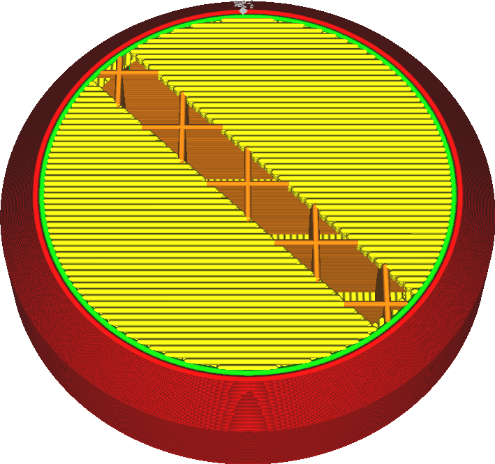 두께가 작으면 내부채움이 너무 짧게 적용되며, 출력 시간이 길어진다. 출력 도중에 패턴을 바꿀 수도 없다.