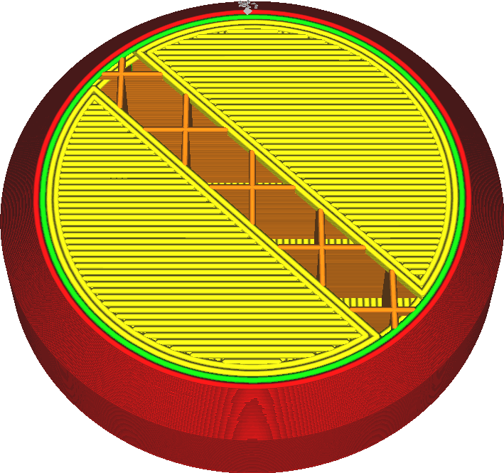 벽 라인을 충분히 늘리면 튼튼한 벽과 함께 벽 형태로 내부가 채워지므로 빠른 출력이 가능하다.