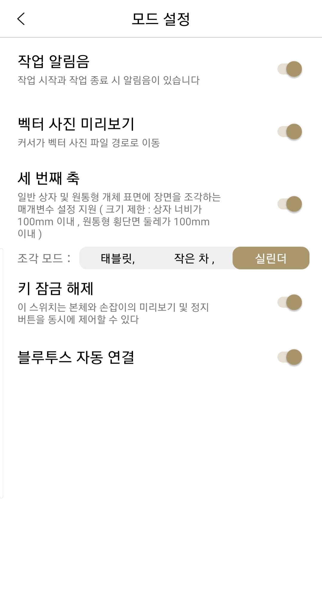 모드 설정에서 세 번째 축을 활성화 하면