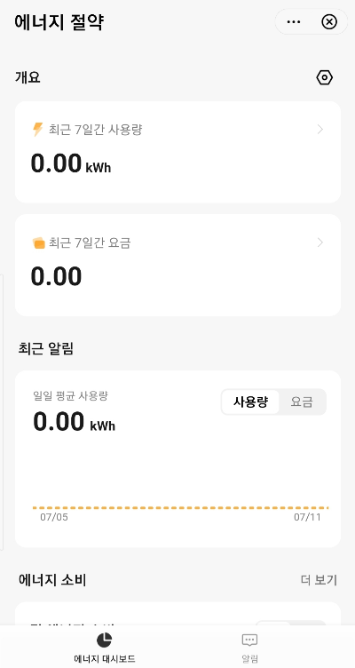 지능형 모드를 지원하면 플러그 전체 통계, 요금 계산 기능을 이용할 수 있다.지능형 모드 화면