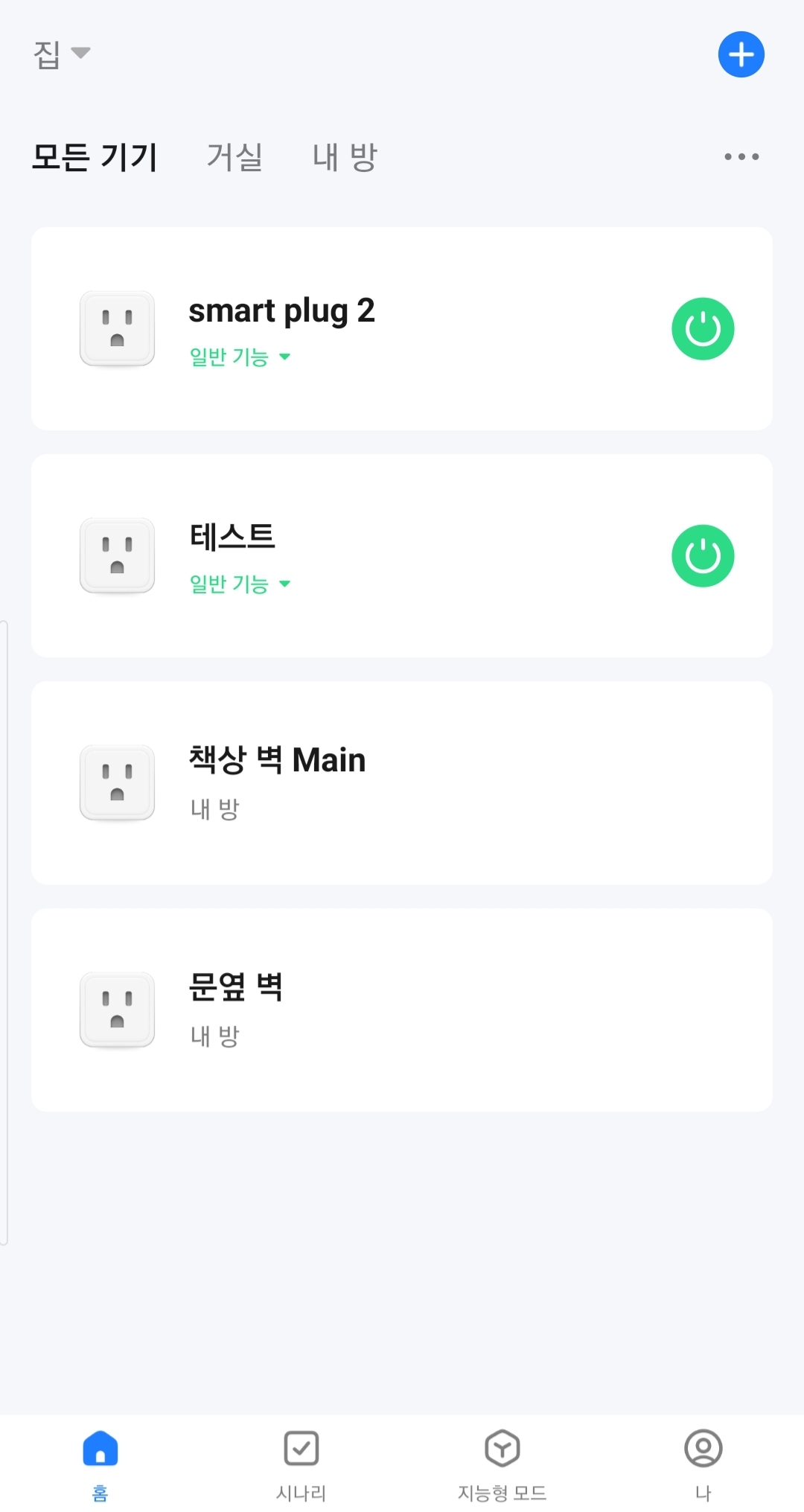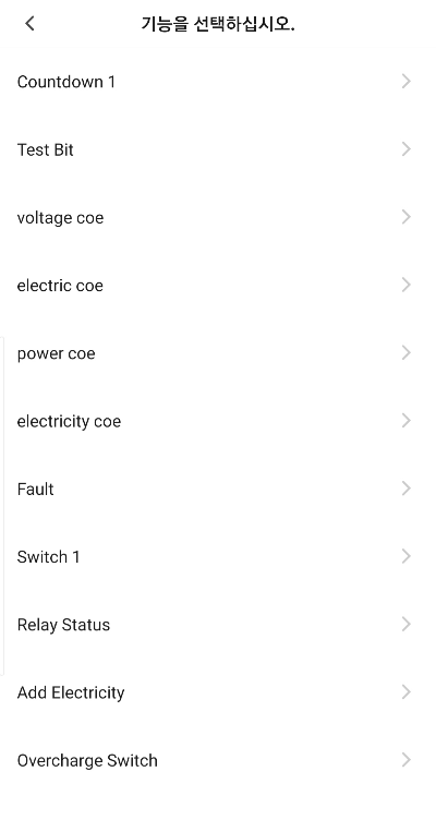 다시 메인 화면에서 시나리(오) 설정 화면에서 플러그 기기 상태를 추가할 때 항목이 엄청 많다.