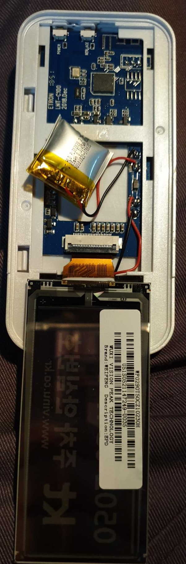 직접 교체하려고 배터리를 살펴보려 했으나, ePaper 커넥터 때문에 열리지가 않았다.