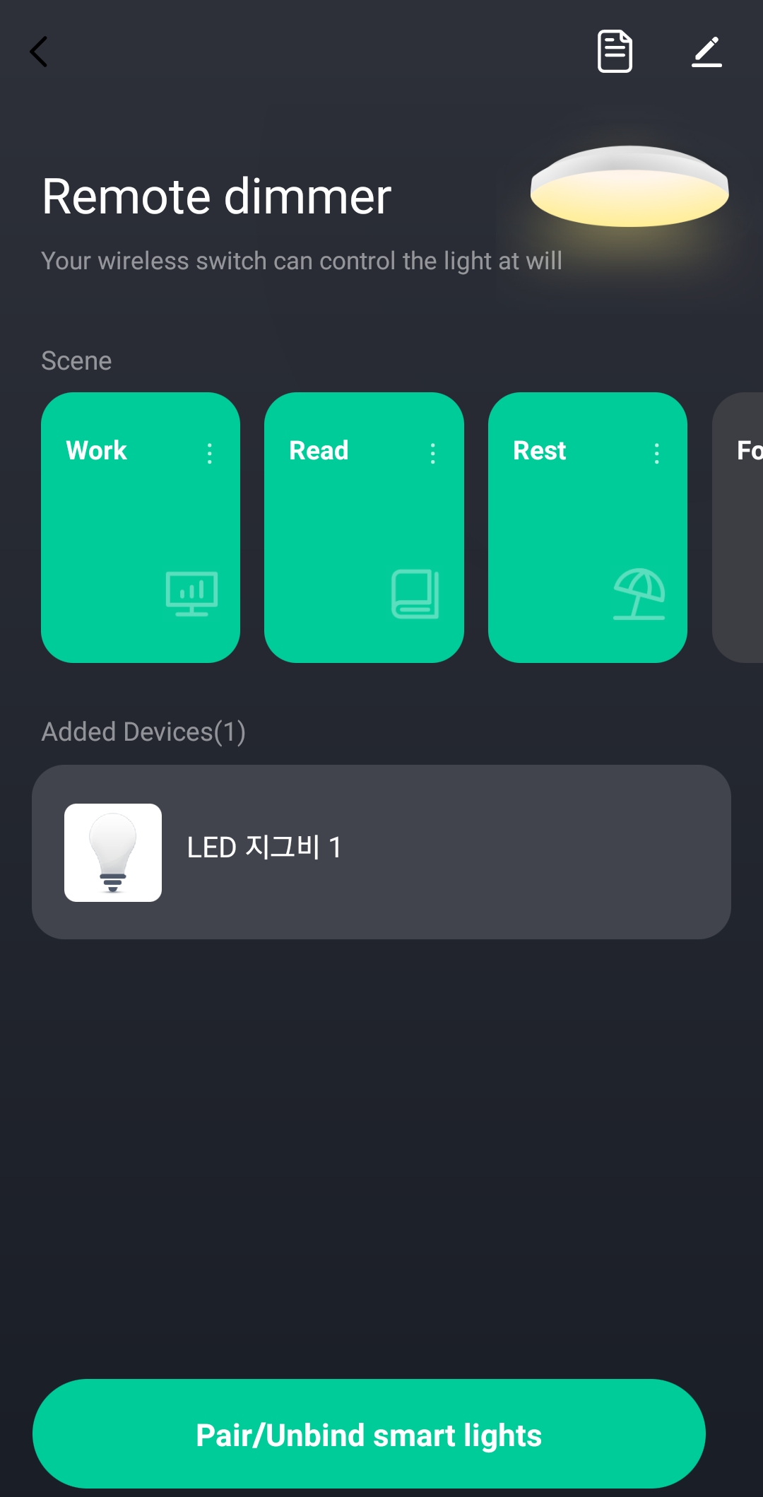 점으로 된 설정 영역을 누르면 이름과 조명 값을 변경할 수 있다.