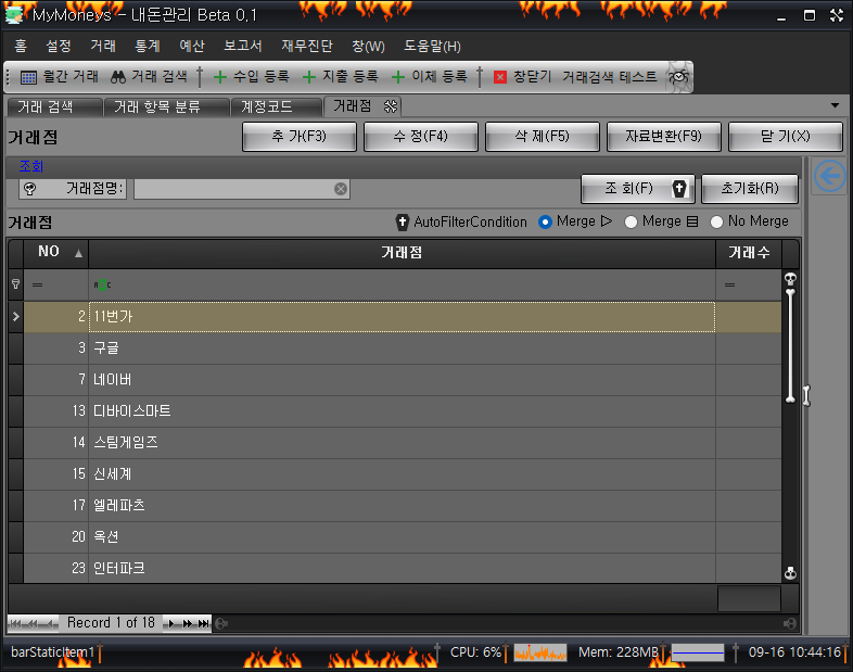 - 거래처 등록, 관리 기능 (재고관리+가계부 통합)