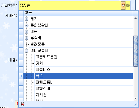 ⬆️ 거래항목은 트리구조로 표시