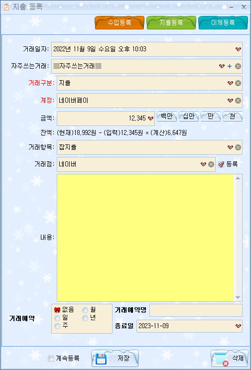 - 거래 등록시 내용 이력 저장 및 불러오기