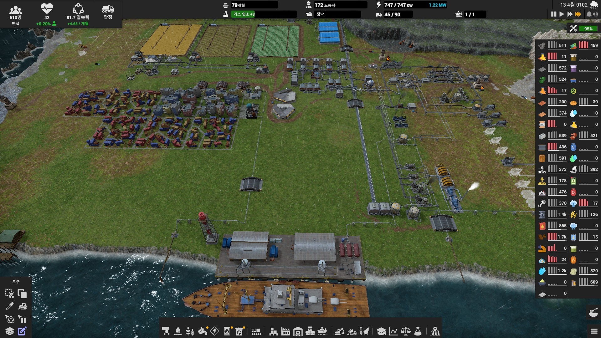 생산과 물류가 주 목적인데, 건물 배치를 얼마나 잘 하느냐가 중요한 게임이다.