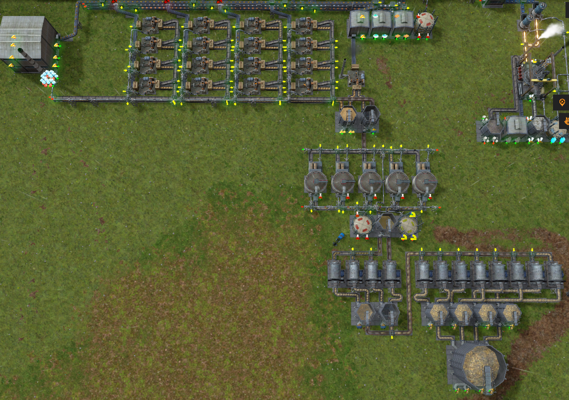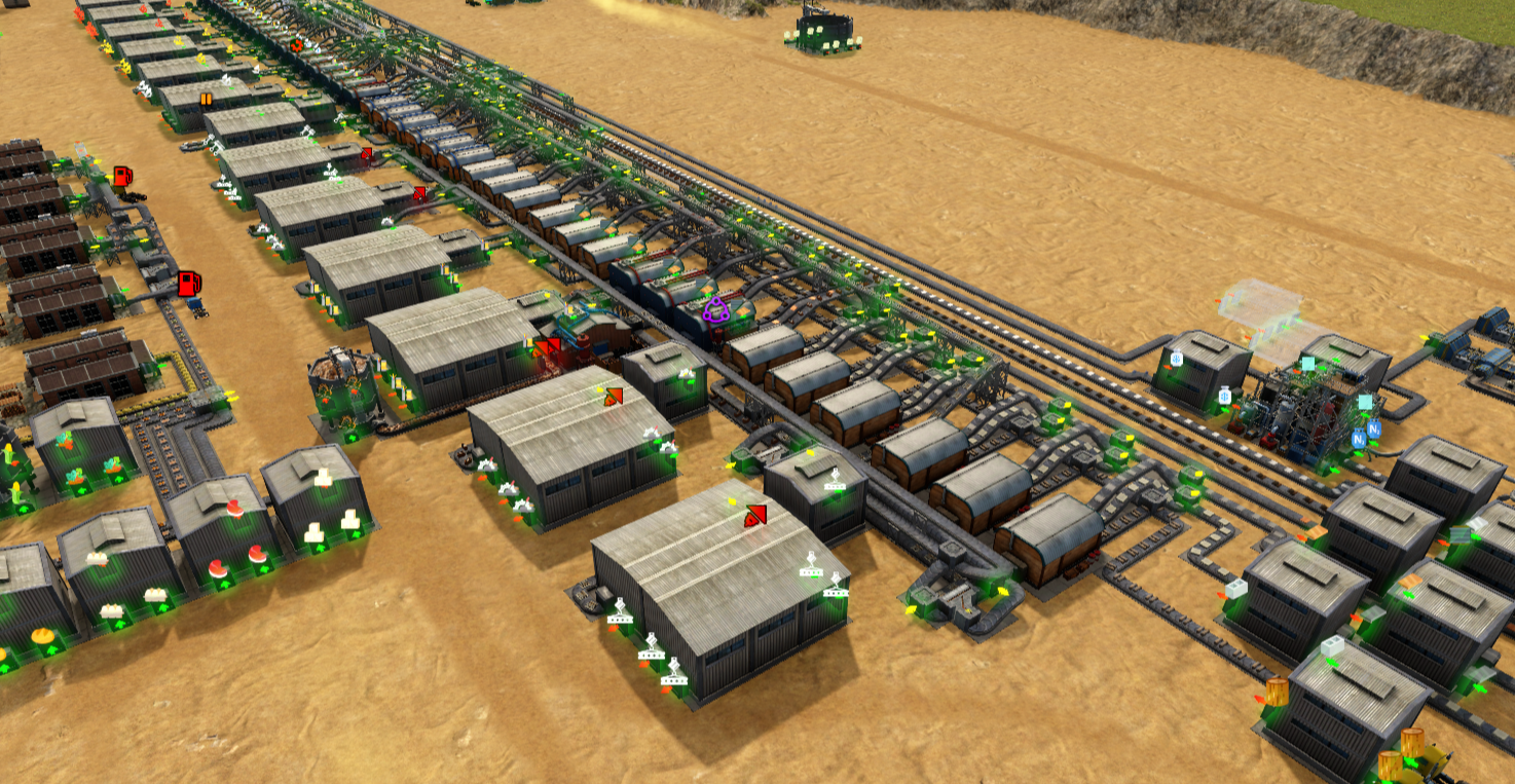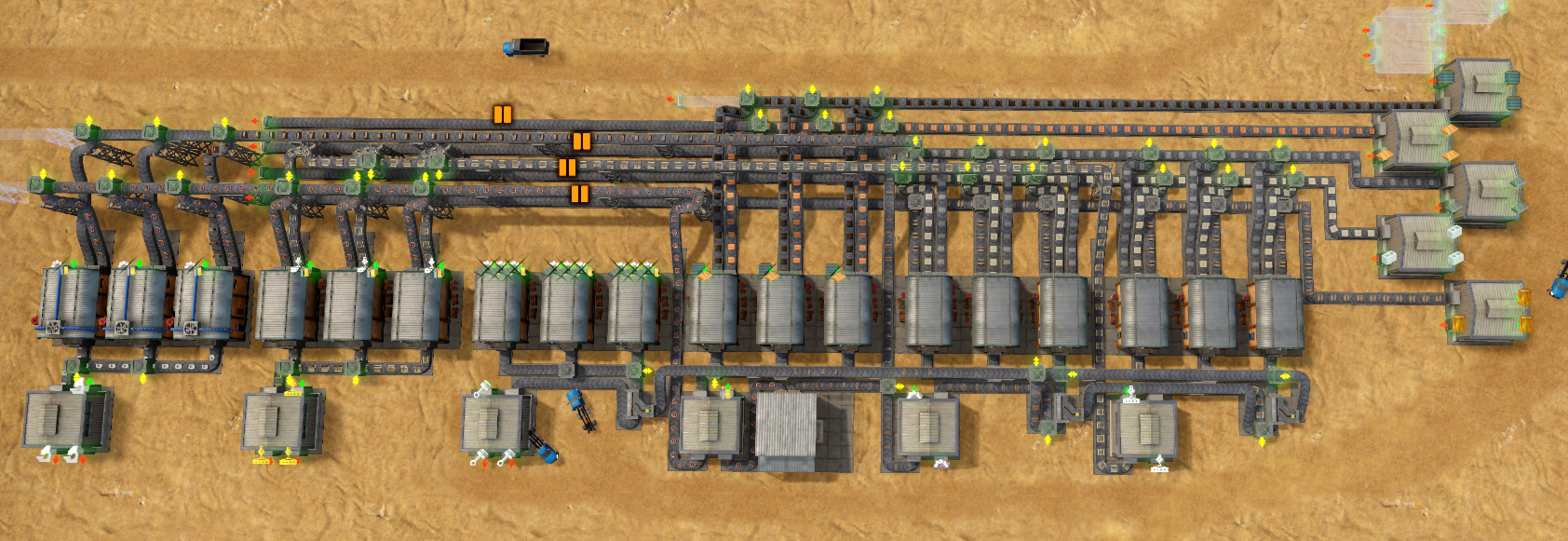 가로 1층은 원재료 공급 라인이며 공장에서 생산된 아이템은 다시 가로 4층으로 이송한다. 같은 원자재를 공급 받고 두 종류의 아이템을 생산할 수 있는 공장의 생산품은 분류기를 통해 각 창고로 전달된다.