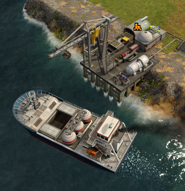 섬의 여기저기 퍼져있는 지하 원유 매립지는 양이 적기 때문에 원유 굴착 장치를 빨리 완성해서 선박 운송을 해야 한다. 항만 시설이 완성될 때까지는 함선으로 직접 수거해야 한다. 통나무, 석탄, 황도 마찬가지.