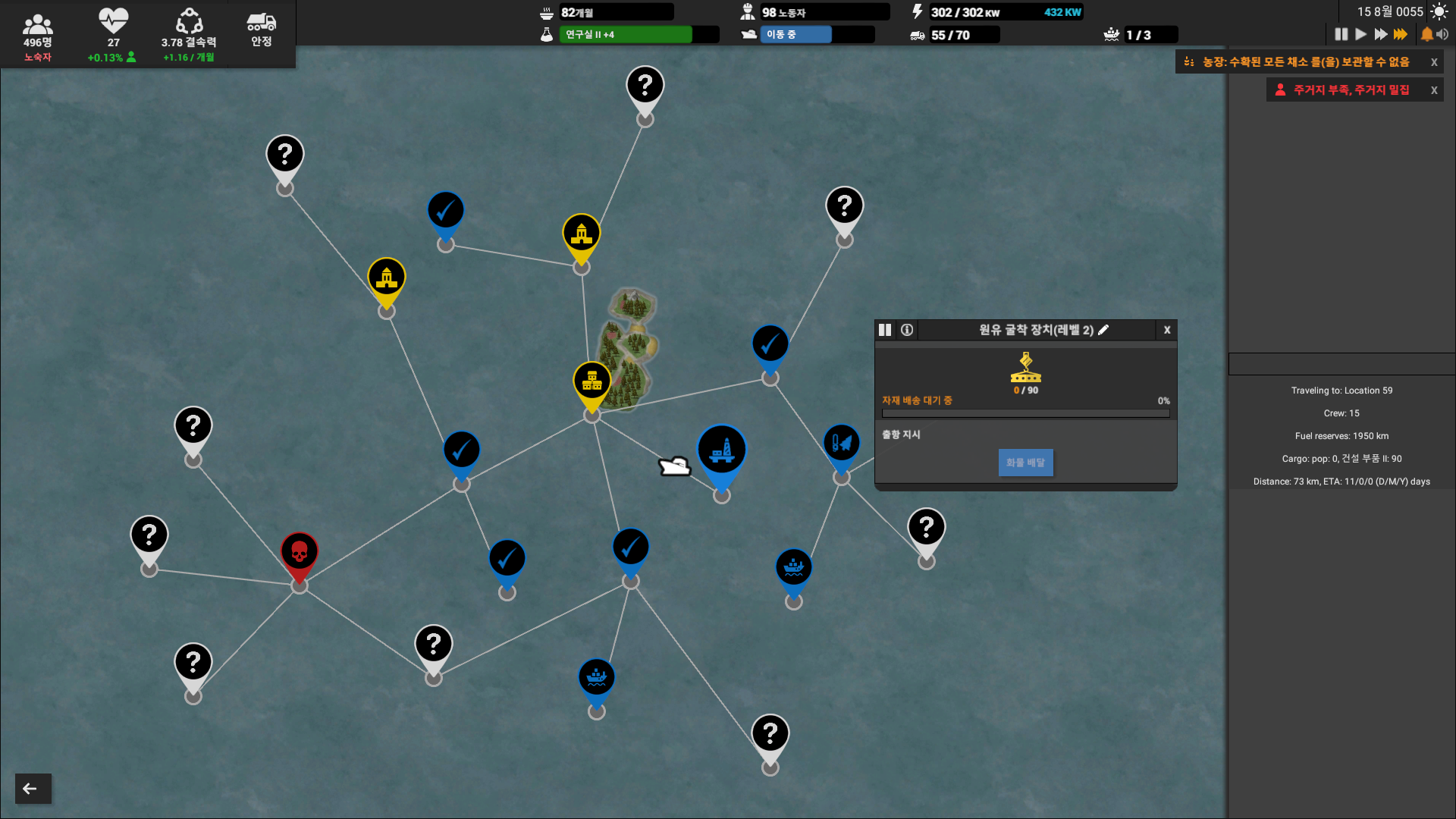 연구소를 1개로 시작했다면 항만 시설(4칸) 해제까지 한참 남았을 것이다. 2칸짜리는 효율이 떨어진다.