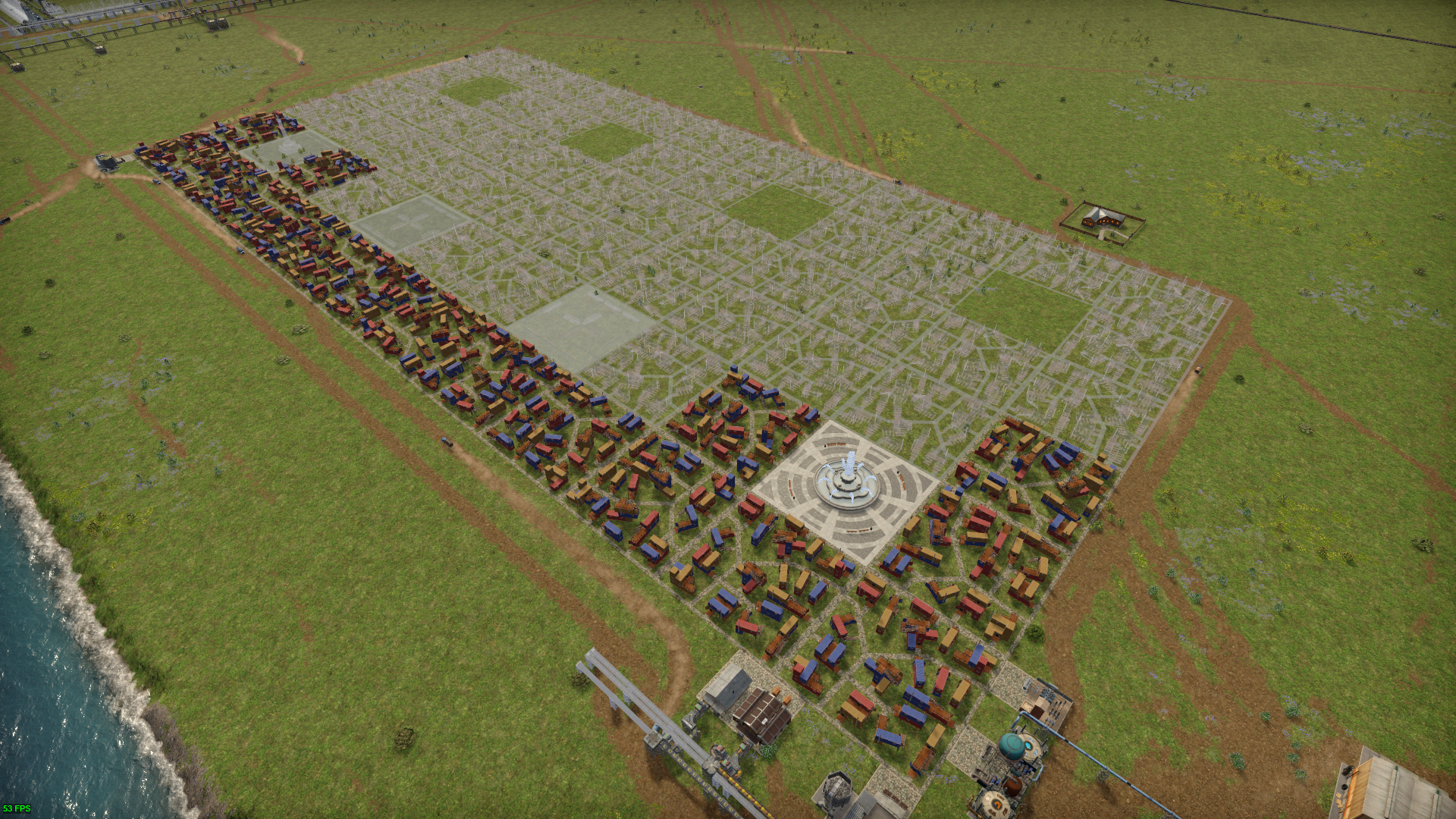 같은 가공 건물에 공급되는 작물끼리 경작으로 설정해서 농장을 구분하여 건설하면 깔끔하다. 감자+채소+옥수수는 주택으로 식량 공급이 되므로 같은 농장에서 경작하고, 식용유를 만드는 콩+카놀라를 경작하고, 닭장용 사료는 혼합기 하나로 만들 수 있는 옥수수+감자+콩+밀을 경작하면 된다. 연료 가스는 혐기성 소화기 하나로 만들 수 있는 감자+채소+밀을 경작하면 된다.