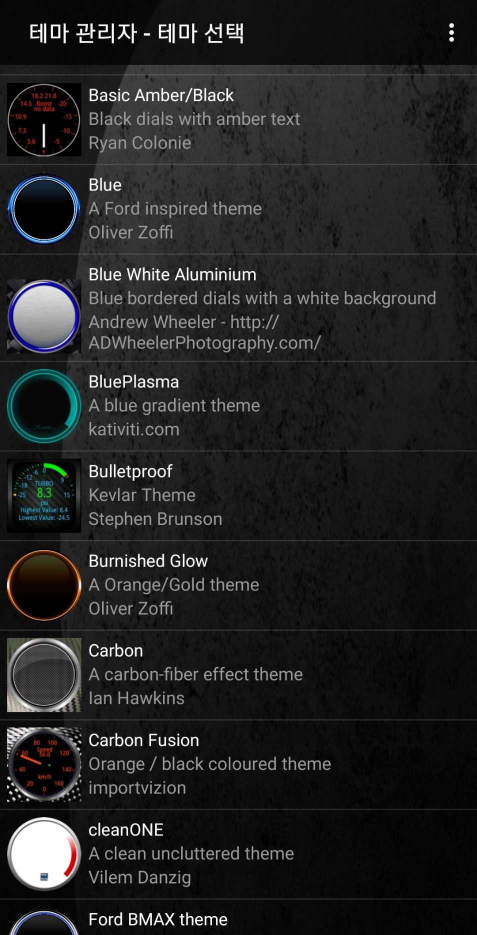 테마는 기본 내장 테마가 다양하며, 앱스토어에서 추가로 내려받거나 사이트에서 파일을 내려받아 설치할 수 있습니다.
