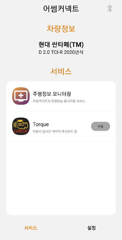 차량 정보 등록 후, Torque(토크) 항목을 수동/자동 실행하면 됩니다.