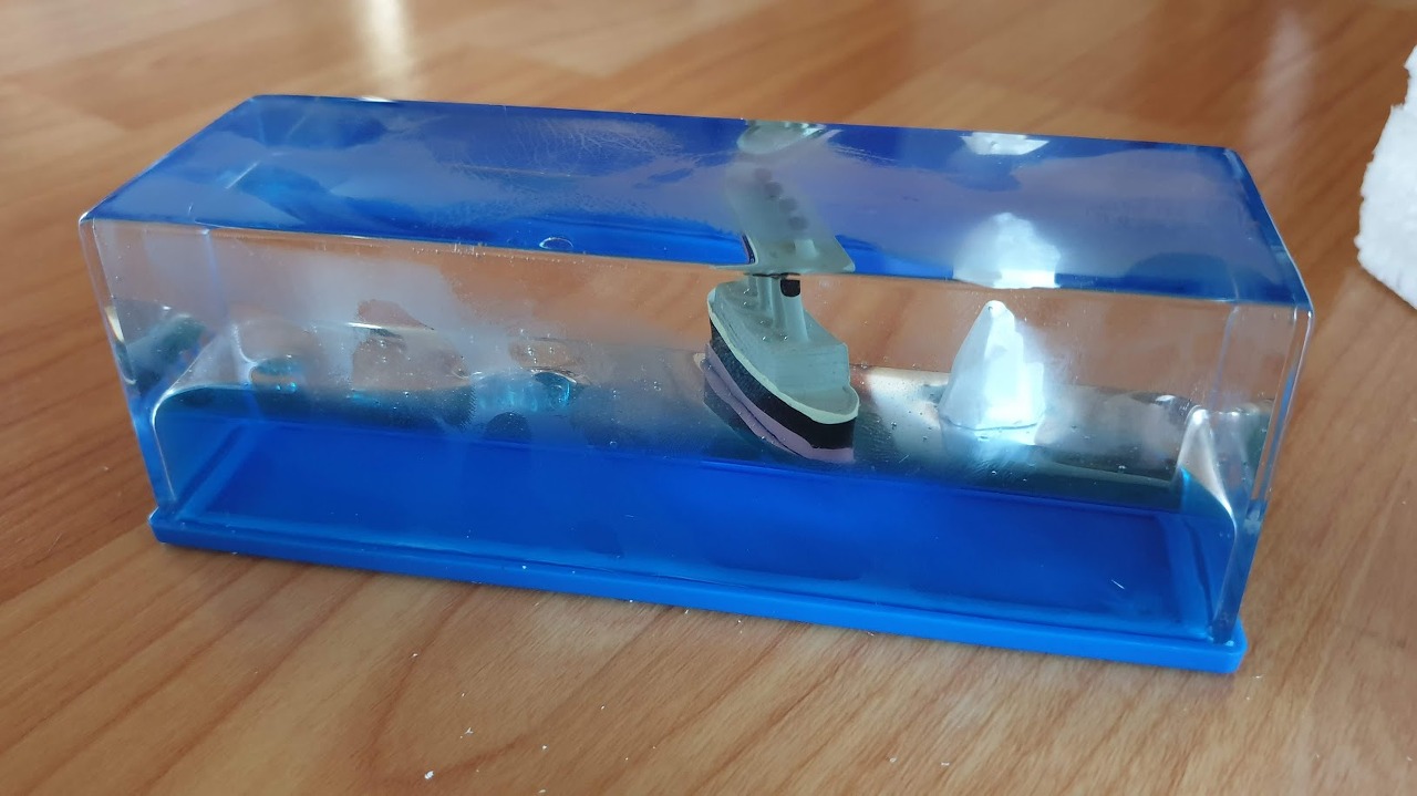 제조 공정은 아마도...투명 용기에 장식품을 넣고 커버를 닫고 밀봉을 한 다음, 주입구로 기름을 일정량 넣고, 염색된 물을 채우고 구멍을 막는 것 같다.
