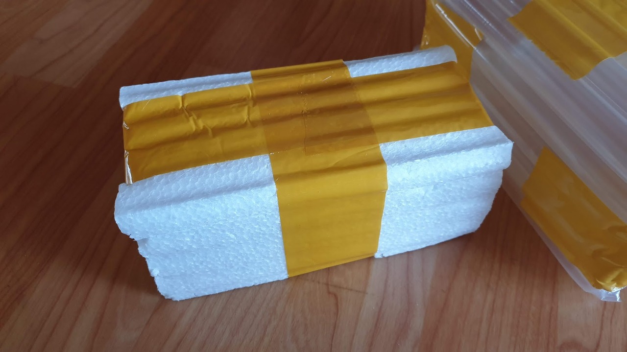 테이프만 칼질한다. 싸구려 스티로폼 답게 알갱이가 아닌 가루가 흩어진다. 스폰지형이 아닌 발포 스티로폼은 쉽게 부서져서 참 쓸모 없는 포장 방법이다.