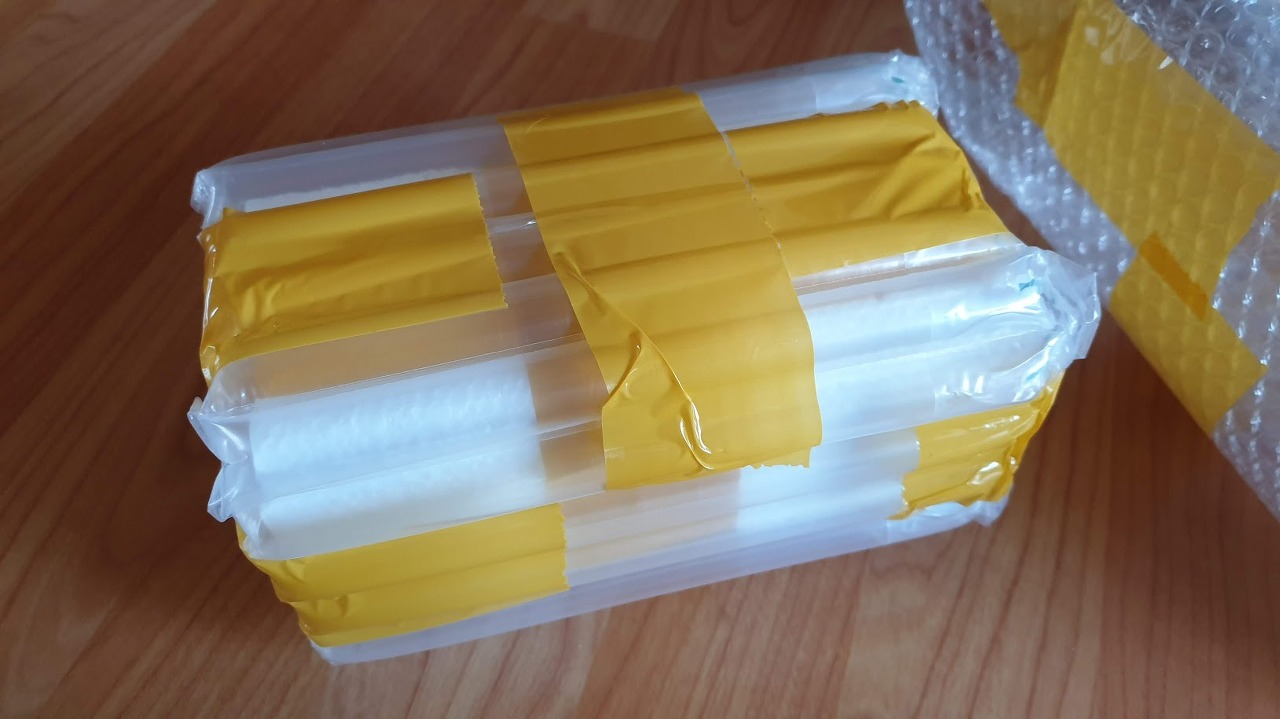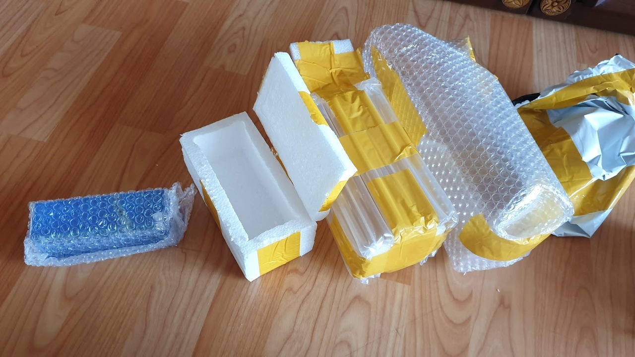 칼질을 해서 에어캡을 벗긴다.