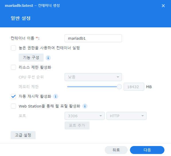 나머지 추가 설정은 Portainer 또는 DSM Docker에서 하면 된다.
