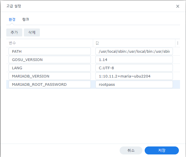 - MARIADB_ROOT_PASSWORD 루트 암호 설정