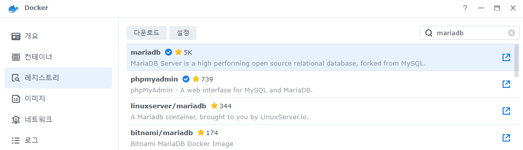 Synology Docker(Container Manager)에 MariaDB를 설치해본다.