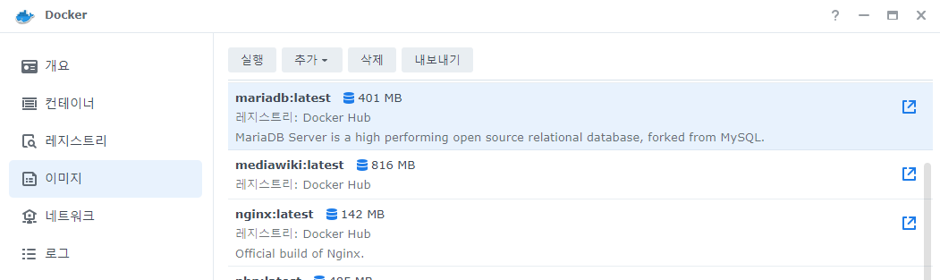 - 마지막 mariadb:latest는 설치할 docker 이미지와 버전.