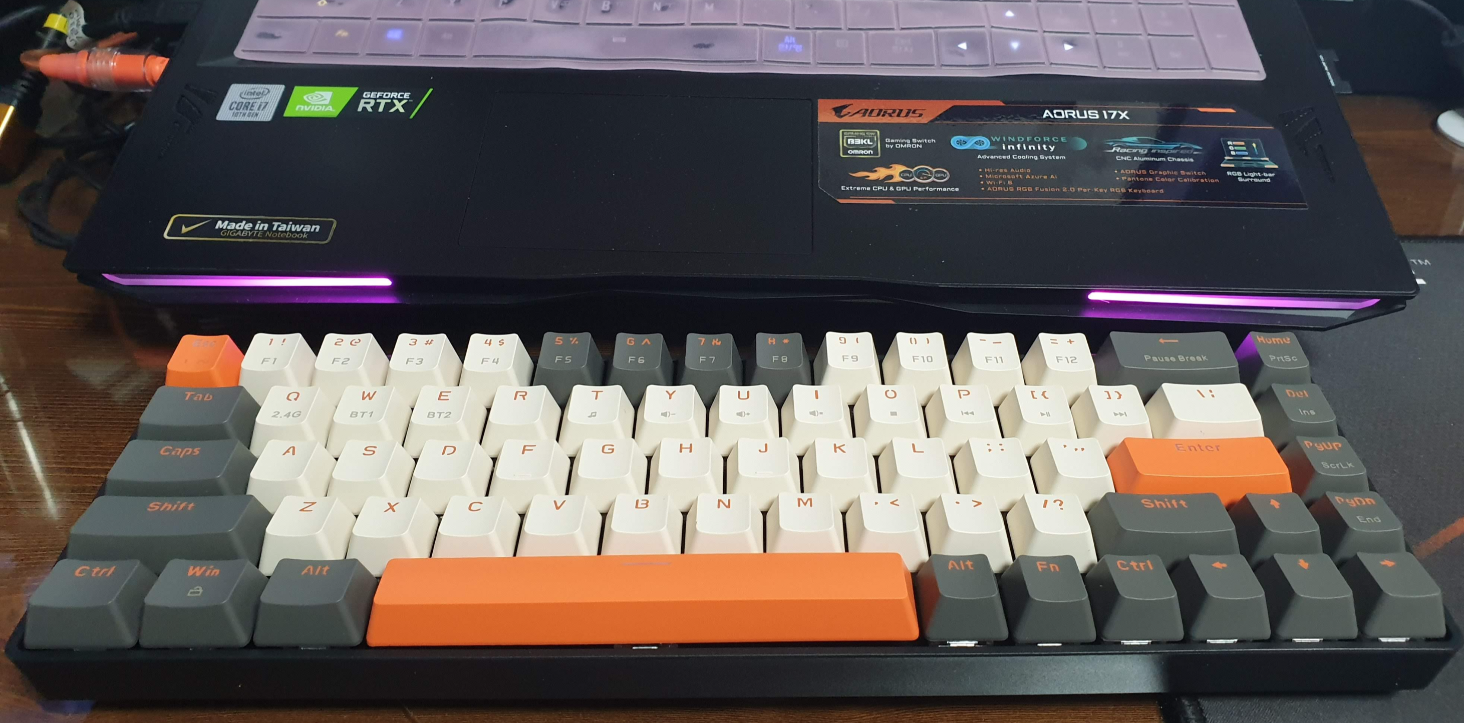 ⬆️노트북 키보드도 기계식이고, 무선 키보드도 기계식이다. 두께 차이가 엄청나다.
