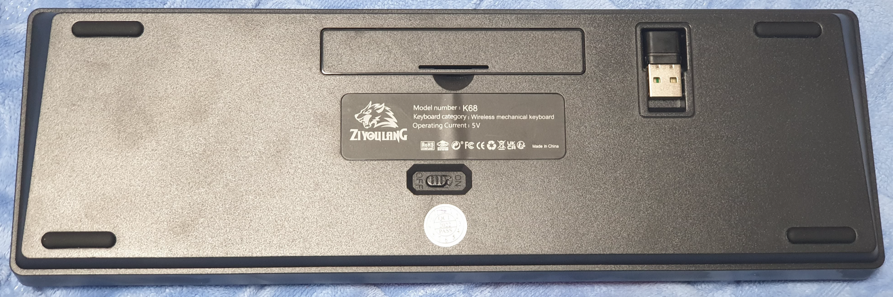 - 2.4GHz 동글이 통신은 키보드 뒷면의 USB 수신기를 기기에 꽂아야 함. FN+Q를 누르면 연결 된다.