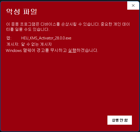 경고를 무시하고 실행을 누른다.