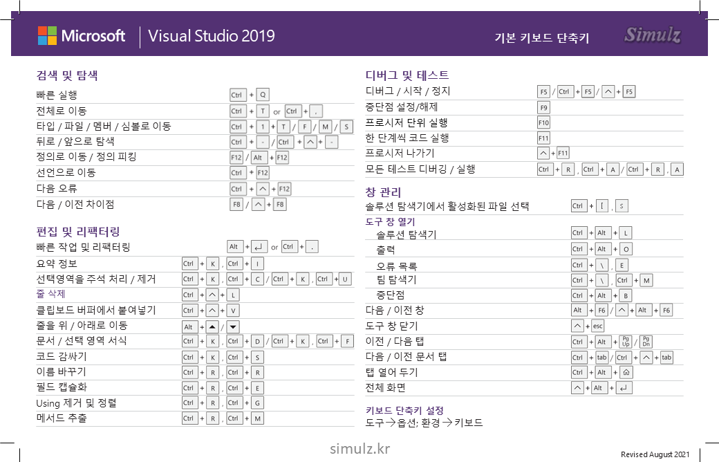 Visual Studio 2019/2022 키보드 단축키 인쇄용(한국어)