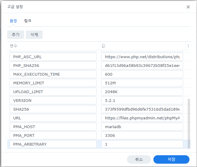 로그인을 할 때마다 서버 주소를 직접 입력하려면, PMA_ARBITRARY 변수를 추가 후 값을 1로 설정합니다. 0은 사용 안 함.