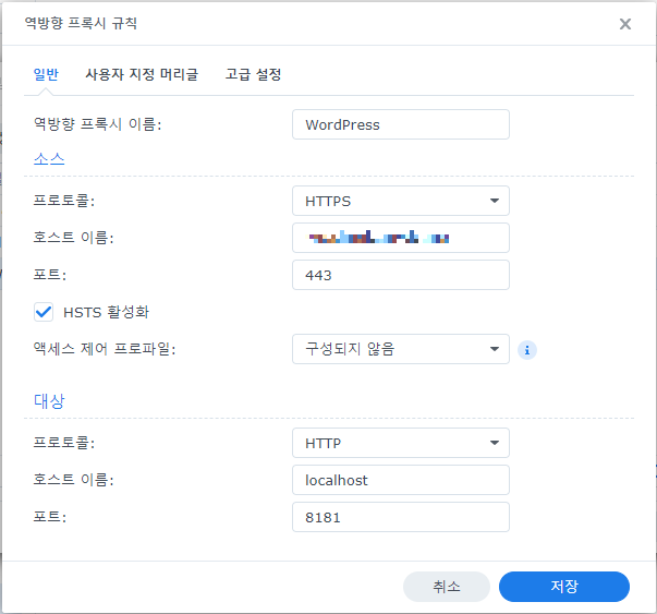 워드프레스용 역방향 프록시 규칙을 생성합니다.