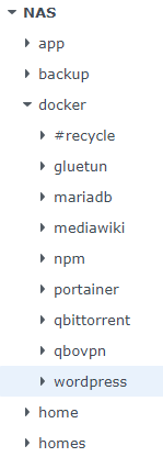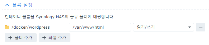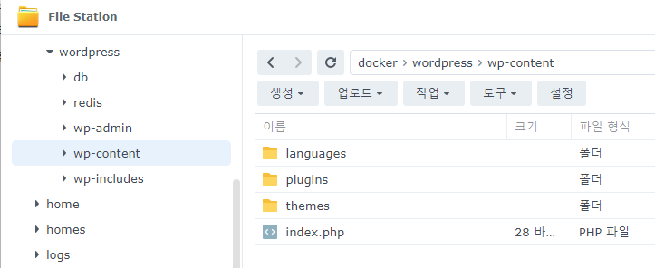NAS에서 /docker/wordpress로 접속하면 컨테이너의 /var/www/html 위치로 포워딩됩니다.