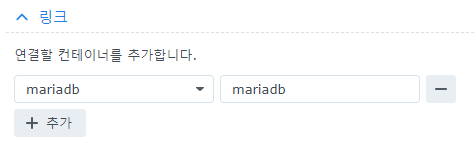 링크 탭에서 추가 버튼을 누르고 DB 컨테이너를 선택하고 별칭을 입력합니다.