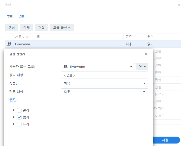 wordpress 디렉터리 권한은 Everyone 그룹을 읽기로 설정합니다.