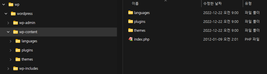 wp-content 폴더로 이동 후, languages 폴더를 docker에서 설정한 wordpress\wp-content 디렉터리에 업로드합니다.