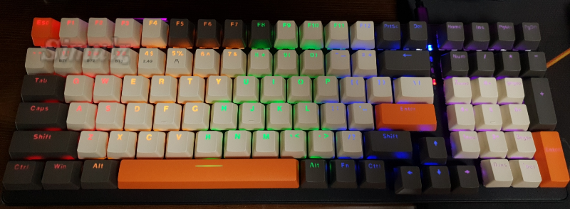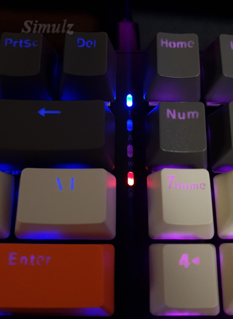 👎 상품 설명은 RGB LED 백라이트인데, RGB LED가 아니라 모든 키가 단색 LED를 사용했다. R/O/G/B/P 색을 연결해 놓고 RGB란다. 그래서 색상 설정을 할 수 없다. 싸구려 노트북에서 볼 수 있는 수준. 밝기 조절과 깜빡임 속도 조절은 된다.