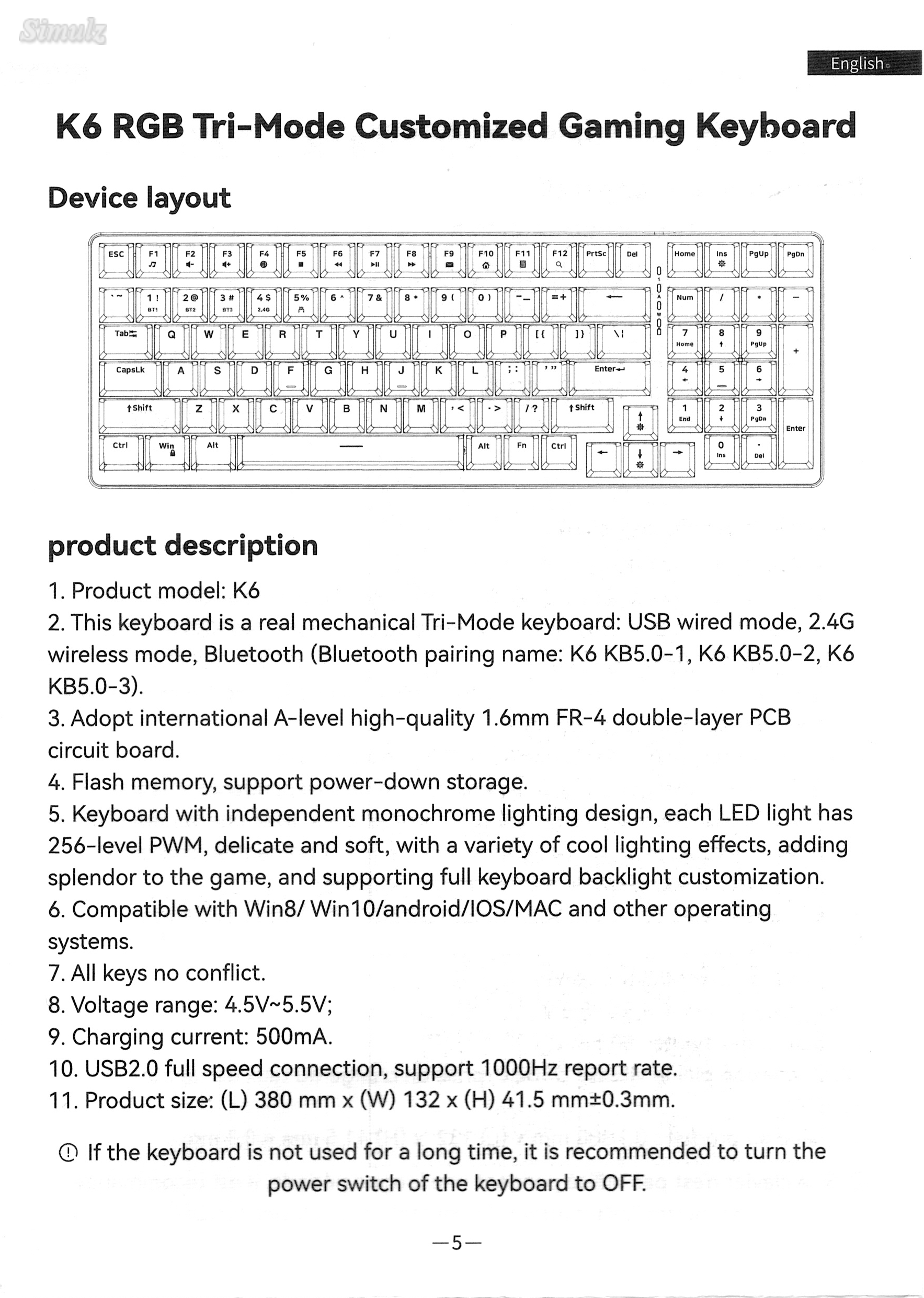 저번에 구입한 K68 키보드 사용이 불편해서 K6 키보드를 구입했다.