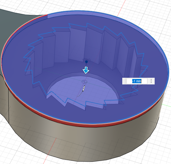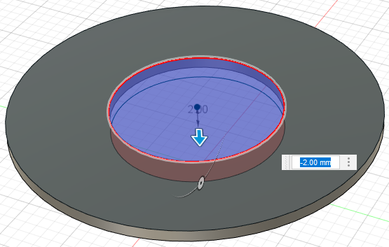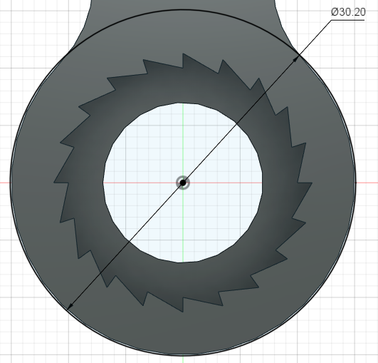 외형 사이즈인 30mm 만큼 원을 그립니다. 그다음 1mm 만큼 돌출시킵니다.