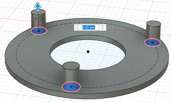 예제 그림은 핀 고정 방식이므로 지름 2.9mm, 높이 4mm인 원기둥을 만들었습니다.